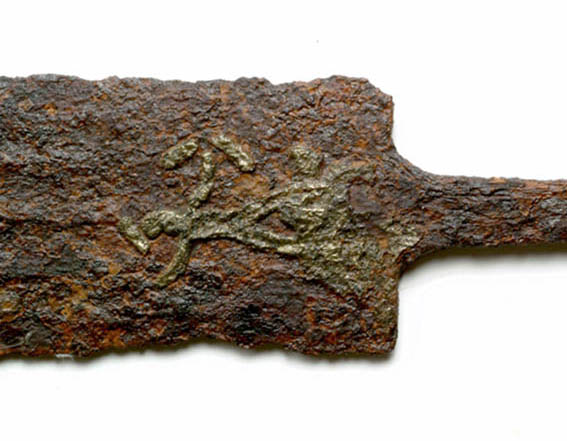 Although broken in two, it is almost completely preserved. Even though by its length it does not diverge from the gladii of the “Mainz“ type, its shape certainly draws it nearer the Republican model, because it has an elongated, relatively narrow blade, with a long point. A channel runs along the middle of either side of the blade, and the point is additionally reinforced and has a rectangular section.
