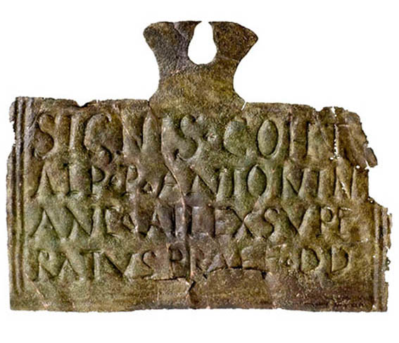 In 2002, the Archaeological Museum in Zagreb acquired a particularly interesting epigraphic monument, an accidental find discovered in Baranja, probably near Dragojlov Brijeg. The object in question is a votive plaque dedicated to the standards of the cohors I Alpinorum peditata Antoniniana by the unit commander, Allius Exsuperatus.