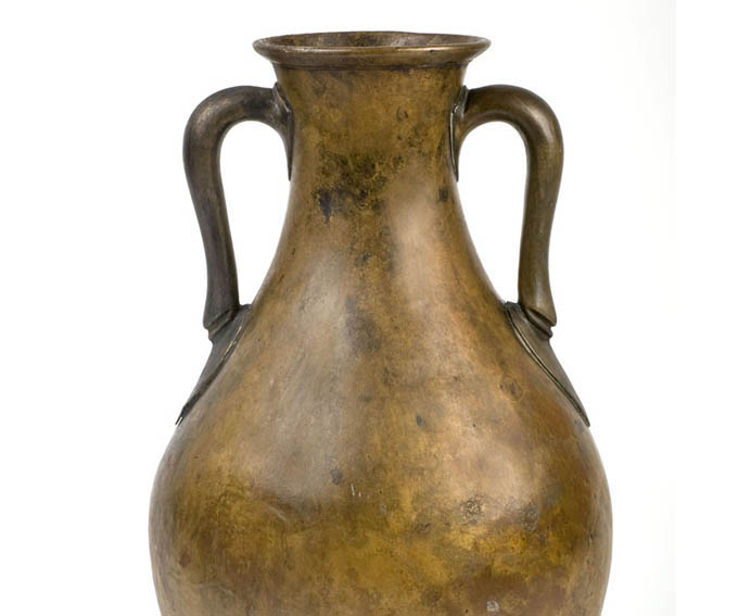 This 1st c. amphora is probably the largest bronze Roman amphora from Pannonia. Its form is simple, and it was additionally processed on a rotating wheel after casting. The ornaments are scarce: three parallel lines above the bottom and one line below the rim.