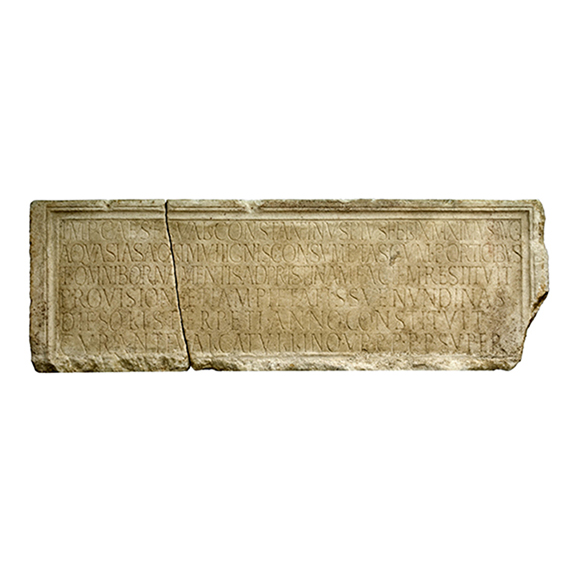 The inscription reveals that the buildings were reconstructed after having been destroyed in a fire, and further evidence of construction works throughout the entire fourth-century complex was also obtained during archaeological excavations.