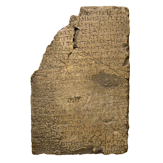 This is the final part of the decree issued by the council of Paros referring to the tribute given in acknowledgement to three members of the Pharos deputation and sending six Parians looking for advice from the Delphic Oracle in order to protect Pharos from current trouble.