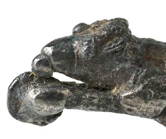 Figura miša na ovalnom postolju. Miš je nagnut prema naprijed. Stražnjim nožicama stoji na postolju dok pruženim prednjim šapama drži disk, kojim dotiče njušku.