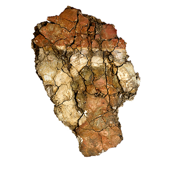A fragment of a mural painting representing a saint’s head with an aureole indicates basilica’s conversion into a sacred place (probably later in the 4th century).